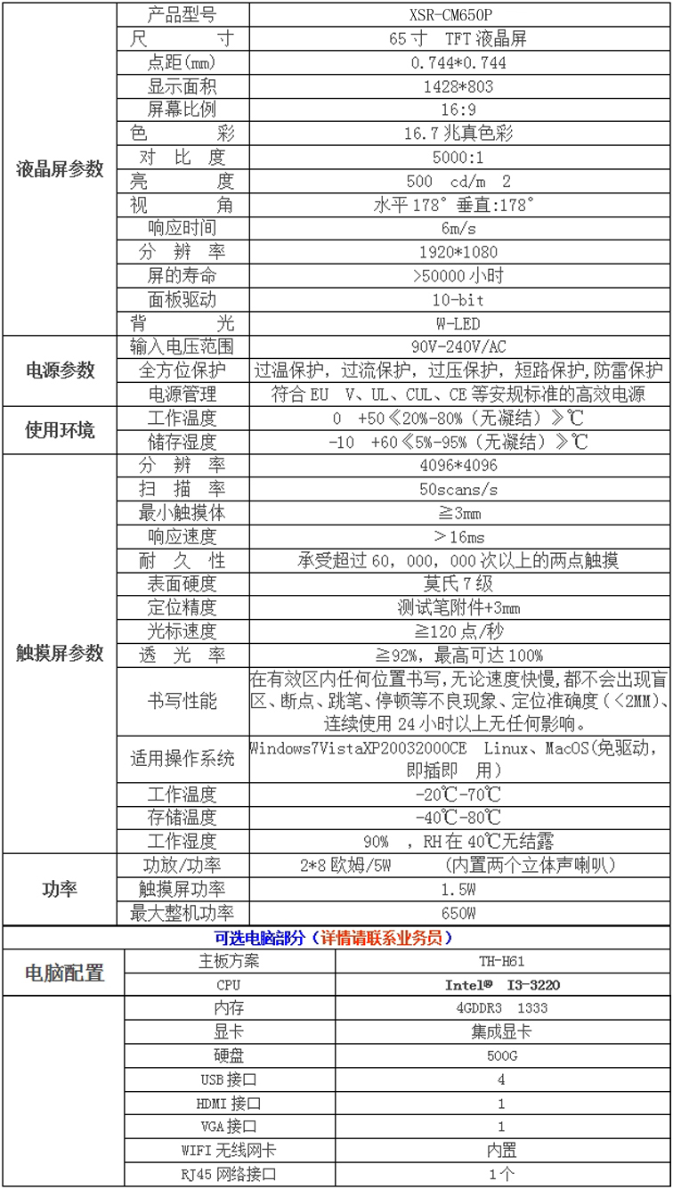 新視銳65寸觸摸一體機——立式紅外觸摸產品參數: