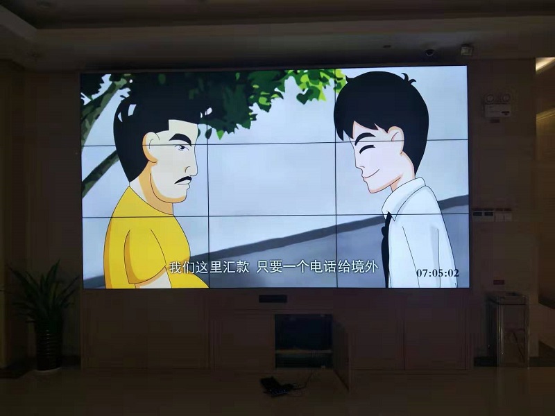 此次項目采用3.5mm拼縫設計完成3×3拼接顯示設備,在合肥農商銀行大廳完成安裝搭建。
