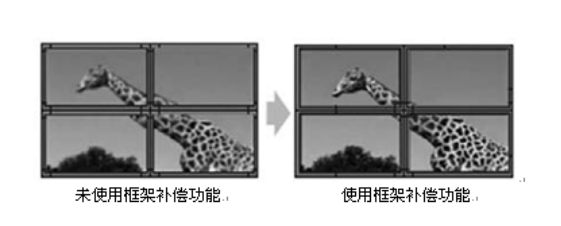 拼接后,拼接單元與拼接單元之間有一個(gè)物理的邊縫,可以通過勾選“消除邊框”,并設(shè)置相應(yīng)值來實(shí)現(xiàn)圖像的連貫性(注:邊框的值根據(jù)屏的物理邊框來設(shè)置。例:LTI460HA03的邊框是10MM,在此處設(shè)置的值就應(yīng)該為10)。去掉邊框后的效果見圖5