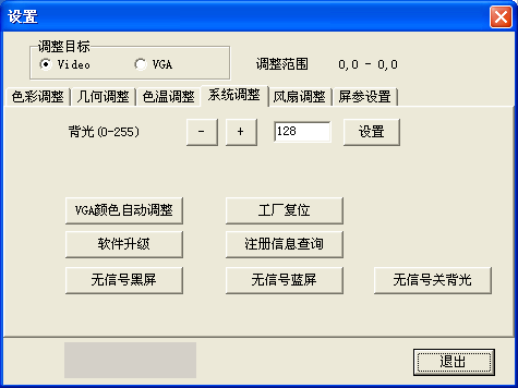 VAG顏色自動(dòng)調(diào)整:當(dāng)在VGA狀態(tài)時(shí)抓到的值不正確,顏色顯示不正常時(shí),點(diǎn)擊該按鈕重新抓取,可重復(fù)多次點(diǎn)擊(注:在拼接單元單屏顯示時(shí)使用)。