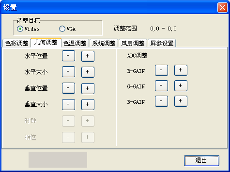 在本菜單里,有Video和VGA兩個(gè)選項(xiàng),在設(shè)置時(shí)選擇不同的信號(hào)源進(jìn)行設(shè)置