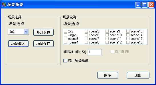 支持16種場(chǎng)景模式保存,可以更改模式名稱。選擇要保存的模式,設(shè)置完成后點(diǎn)擊“保存模式”。“調(diào)用模式”可以調(diào)用用戶保存過的模式、跟據(jù)有需求用戶的還可以啟用場(chǎng)景輪詢模式