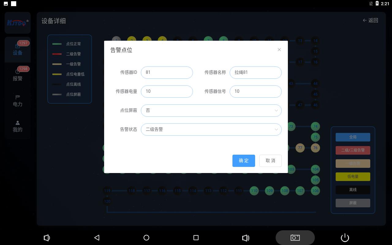 點擊圓圈彈出對應保護裝置的詳細信息,并且可以設置保護裝置的屏蔽狀態,手動解除二級告警狀態