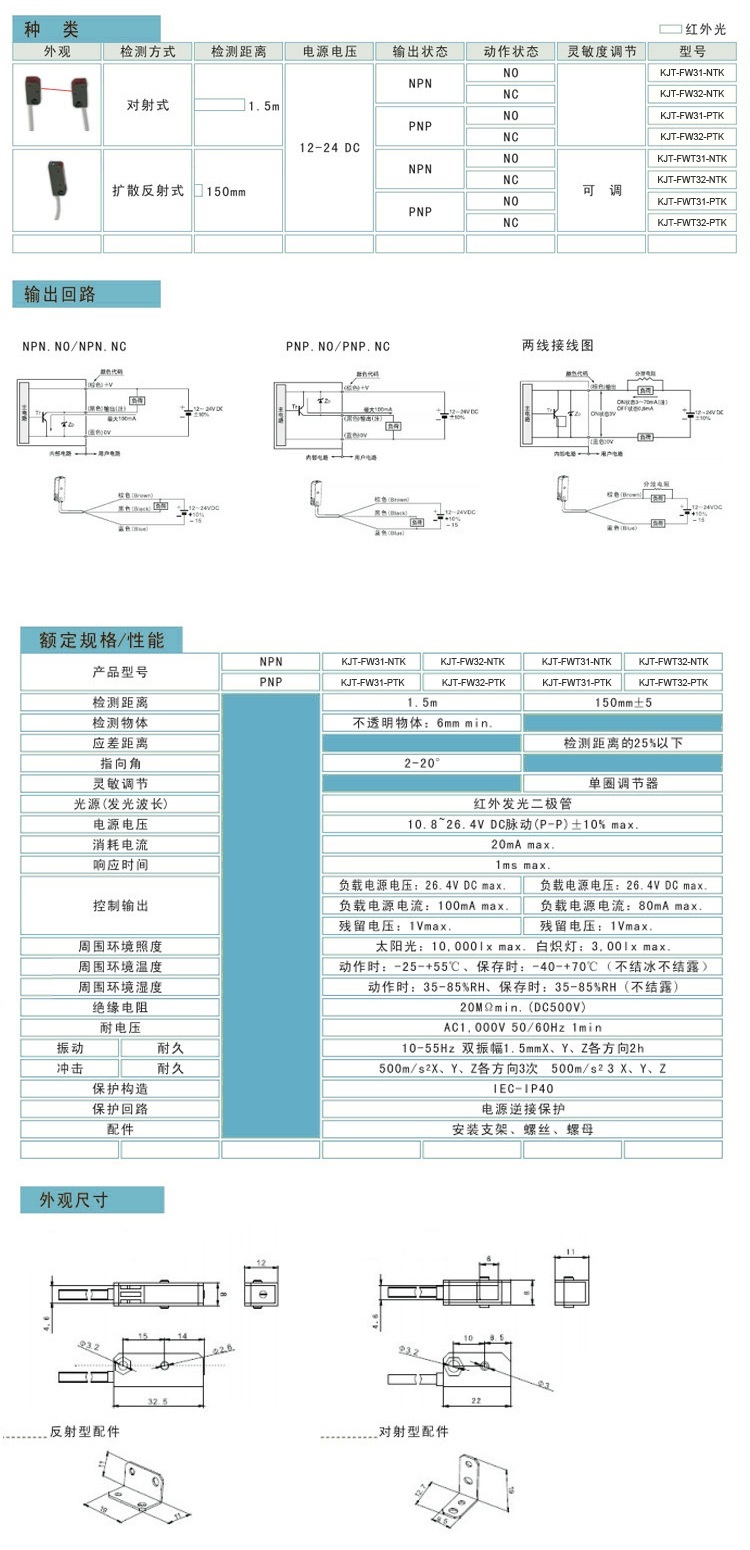 KJT-FW微型光電開關|光電傳感器產品型號-參數-接線圖