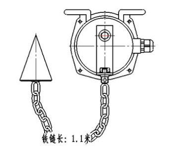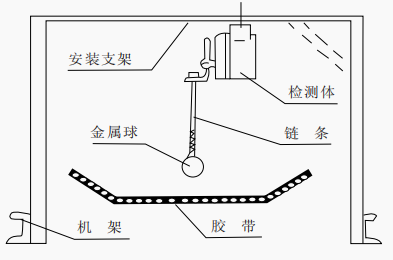 該檢測(cè)器采用下垂鏈球與物料接觸的接觸檢測(cè)方式,當(dāng)膠帶運(yùn)送物流時(shí),物流推動(dòng)鏈球并帶擺壁向一側(cè)偏移,若偏移角度大于20°時(shí)內(nèi)部開(kāi)關(guān)動(dòng)作,輸出一組開(kāi)關(guān)信號(hào)。